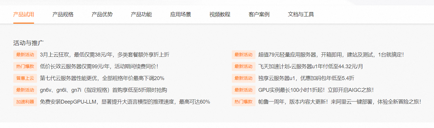 云服务器(ECS u1实例) 2核4G、5M固定带宽、80G ESSD Entry云盘 199(新购、续费同享) 企业级应用、高负载场景 企业新老客户同享,活动到期前新购续费均可享受