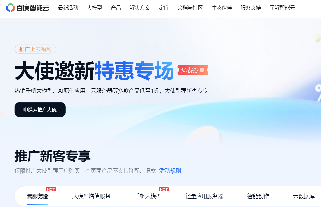 介绍:百度智能云是百度旗下面向企业、开发者和政府机构的智能云计算服务商,以“云智一体”为核心赋能千行百业,致力于为企业和开发者提供全球领先的人工智能、大数据和云计算服务及易用的开发工具。百度智能云专注云计算、智能大数据、人工智能服务,提供稳定的云服务器、云主机、云存储、CDN、域名注册、物联网等云服务,支持API对接,快速备案等专业解决方案;凭借先进的技术和丰富的解决方案,全面赋能各行业,加速产业智能化。